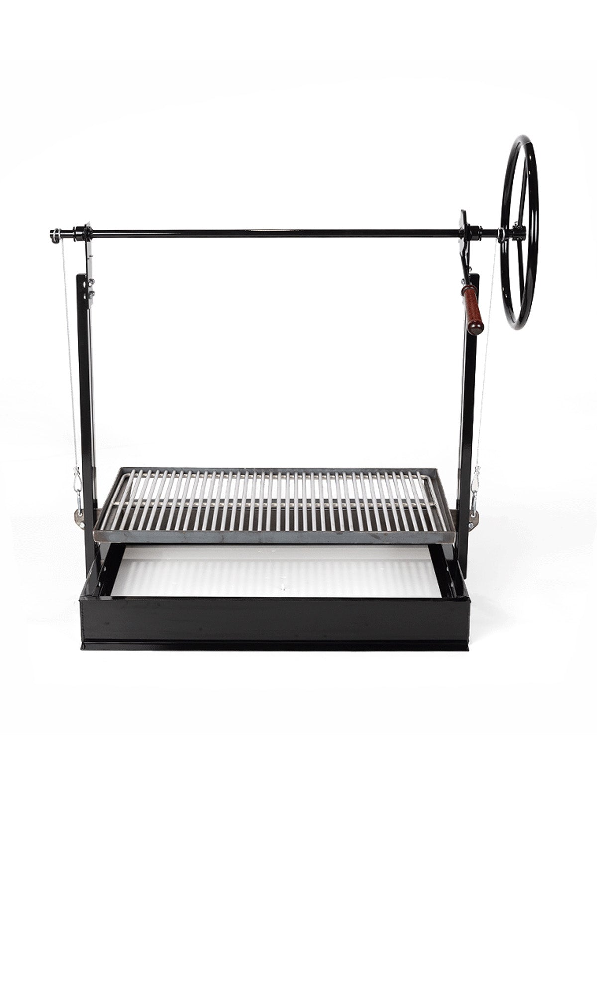 We all love our food cooked over a wood fire, the problem is most grills can't take the heat of burning wood. The Braten is your grill for wood fire cooking. The coal grates are made from 3/8" solid steel, and it is sized right to take whole logs. If you prefer to use charcoal, the Braten will work just as well.