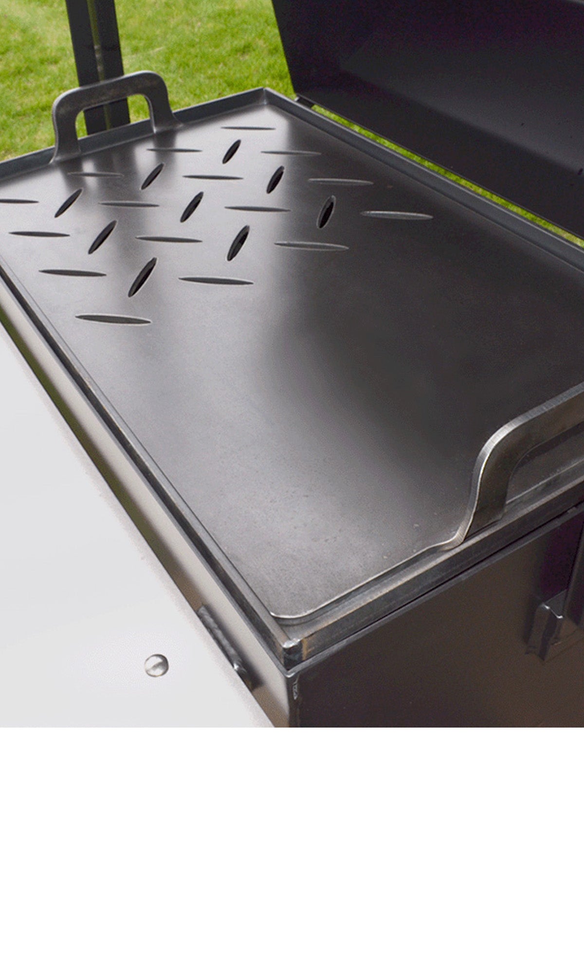 The 1000 Series Firebox insert fits onto the coal grate inside the side firebox. With this you can use more lump charcoal for longer burns. This design channels the bulk of the heat directly into the cooking chamber. Secondary heat goes into the air gap between the insert and firebox wall and is also channeled into the cooking chamber.